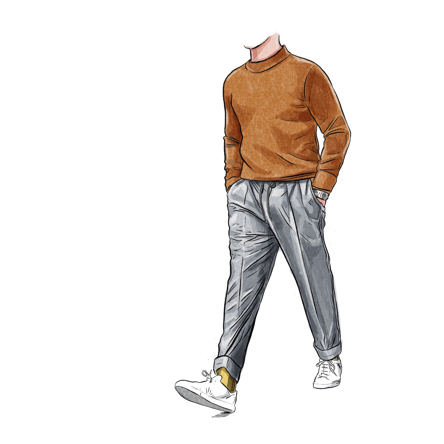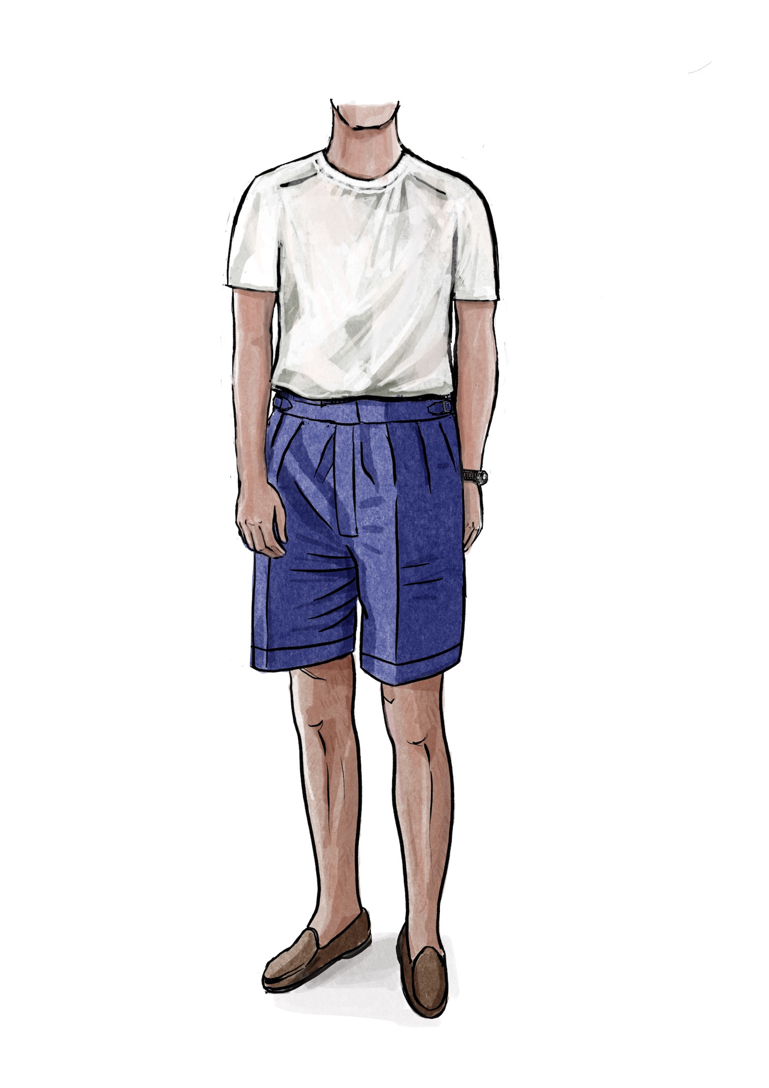 Illustrations for Kit Blake menswear, showing the range and fit of their trousers.